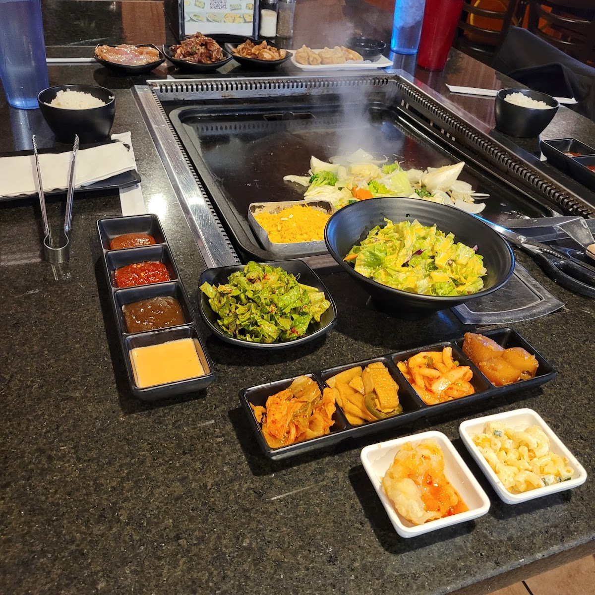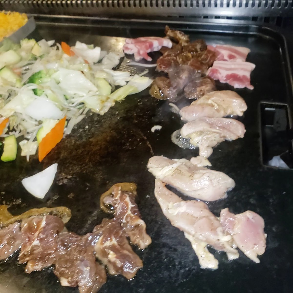 This was our first time trying Korean BBQ where we get to prepare our meal for ourselves. We brought another couple along so it was a new experience for us all. Let me start with this - it was a cool experience. I think my preference is for someone else to prepare my food for me, as they hold the accountability for the seasoning. . . and their experience means it will taste consistent every time. We ordered the Combo Couple for $69.99 and we were most pleased with the amount of meats we got. There was an assortment of beef, chicken & pork. It came with 2 salad options, fried rice (they prepared it), a sweet corn dish, and mixed vegetables. We didn't like the spicy salad, but the salad with ginger dressing was delicious! We had to prepare the mixed veggies & the sweet corn & cheese dish on the grill, and they were also very tasty. The rice was great too! Less than great were the tiny pickled sides like kimchee or others. Normally, I love items like these, but they were just ok. Nothing grand. Now for the meats - there was plenty, and we had fun cooking them. The only challenge was seasoning them up properly. We couldn't seem to get the thin brisket to tate like anything. But the marinated meats turned out well with a little salt and/or pepper added. Overall, the food experience was fun & exciting. The customer service experience left a lot to be desired. Our wait person spoke too fast, seemed frustrated when we asked questions, dropped the food off with us, gave little to no direction/ instructions and then disappeared for the rest of the meal. When we needed more cooking utensils, vegetables, or something, we had to wave over another waitperson to assist us. I was disappointed in their service experience most, especially since they added on 18% to your bill automatically. Pay us to bring food out that you cook for yourself! Ha! The hilarity of it all! I